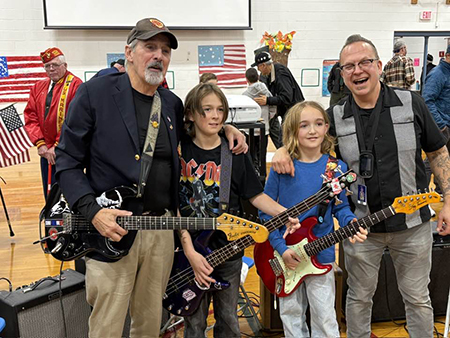 The first song BETTER THAN GOLD is a song that some of the kids wrote about veterans some 15-20 years ago. And the second song was LITTLE WING by Jimi Hendrix, that I sang and played guitar on. I dedicated this song to my late friend Joe Somogyi. I was joined by Auggie on guitar and Eddie on bass. It was great. The teachers, the students, and the veterans all appreciated the two songs. And we were all overwhelmed by the applause and accolades.
