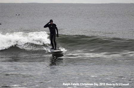 This is a photo that Ed took of me on Christmas morning December 25th, 2010. He had called me earlier in the morning knowing that I would be going out somewhere this day. This was during my year long CATCH A WAVE FOR MOLLY campaign. I told him I would more than likely be at the Rocks.