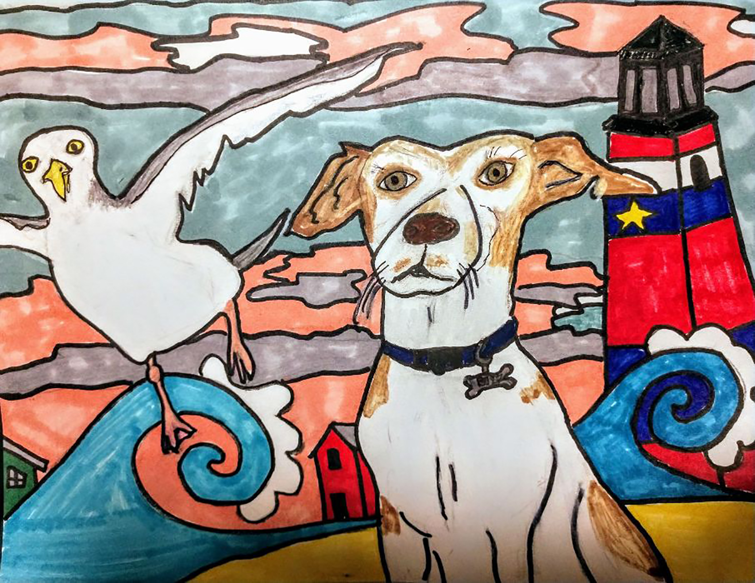 Artist: Erica Nardone Title: Beagle and Gull Medium: Sharpie on paper