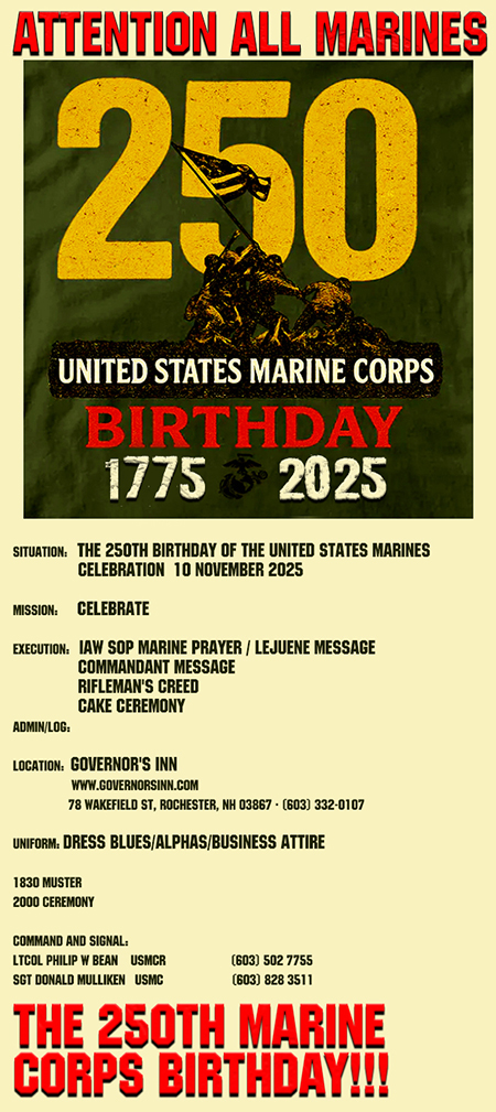 HAPPY 250th BIRTHDAY USMC November 10th, 2025!