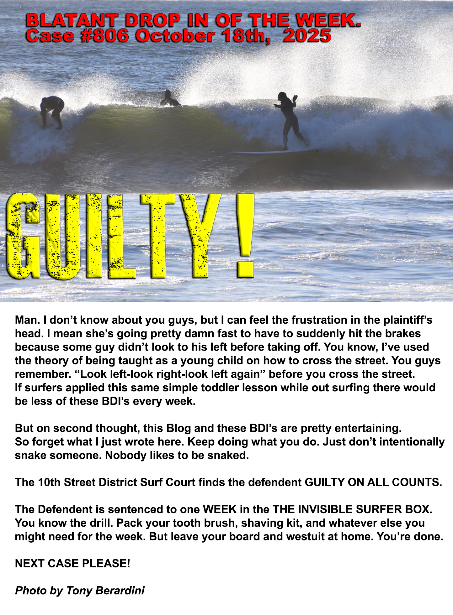 (Above) All Rise: The 10th Street District Court Of Surf is Now in Session. The Honorable Judge RALPH presiding. Case # 806 BLATANT DROP IN OF THE WEEK. Click the image above to see the outcome of this Surf Crime and the verdict that was rendered.