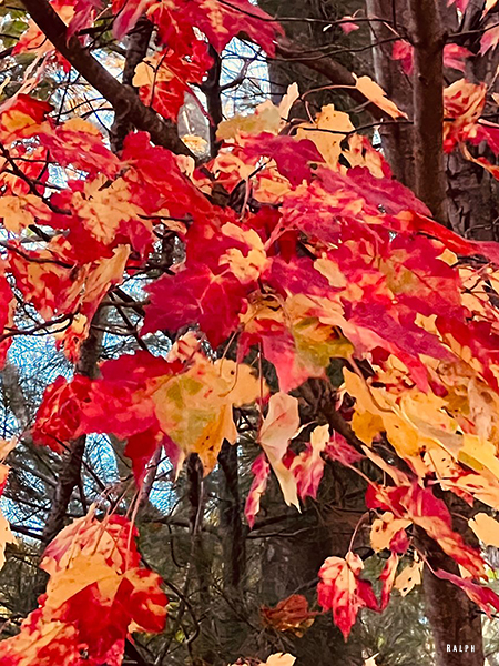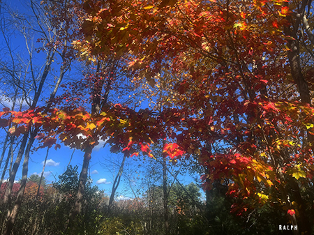 Both these pics above were taken in my backyard. We are surrounded by the Fall Foliage all over the Seacoast. Every road we drive on is coated with the colors of autumn. From September to November. But October is the best of the three. The reds, oranges, yellows, and rust colored browns.