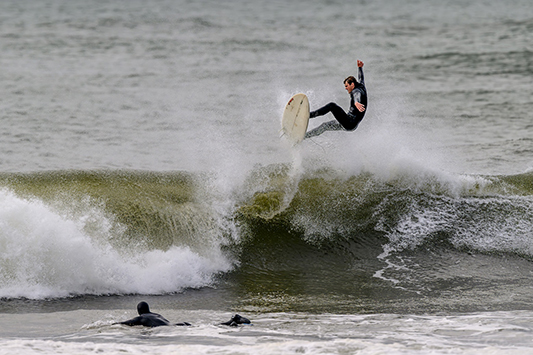 (Above) This is a well timed rebound off the breaking section of the wave. October 14th, 2025 Photo by Ed Moran