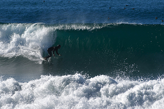 (Above) The swells are always bigger in your west coast neighbors beaches.