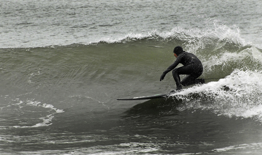 (Above) Jared Velstos in tune with the pulse of this swell. 10th Street Tuesday April 5, 2011. Photo By Ed O'Connell Click on the photo above to see the Whole Gallery.