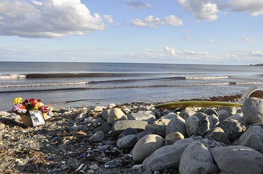 (Above) The setting was beautiful. Straws Point where Allan surfed.