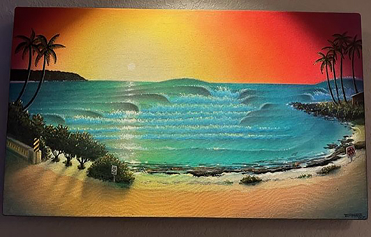 I have to say I wish I had taken better photos of this painting. My old landlord ended up painting over this because his wife was sick of it. I was just starting to get into the painting of waves in the 70's. I have since gotten way better. I miss that painting, and I miss Jon Odence. Our old landlord. He got sick and passed away leaving behind his wife JoAnn and his young son Charlie. Photo courtesy of RALPH