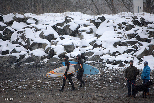 I had been out shooting all morning that day and was just about ready to leave when I spoke with one of the guys leaving the water. Cam Macleod was out for hours and he was leaving. Typically I’ll say hello if it’s someone I know. Whenever Cam told me that Crop was out? I was staying until he got out of the water. I had been shooting both stills and video. But with the snow blowing so heavily, I could not make out half of the surfers out there. So I wasn’t sure if I had gotten him or not. I do know that Crop is a Goofyfoot. So I shot every single goofyfoot who caught a wave. As cold as I was, I was not leaving until I saw Dave Cropper himself.