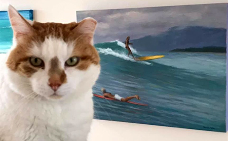 Here's one of Hannah's paintings with their cat Koa giving us the "locals only" look. I'm kidding. But as a pet owner, I love the fact that pets live and mingle with us during our creative time. There's a whole gallery of Sam and Hannah's work and if you want to purchase any of their paintings or commission them there's info on every gallery. Of course you could just go through Koa here.