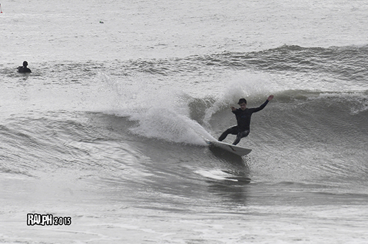 (Above) Like father like son. The cutback does not fall to far from the beach. Kody Grondin following suit. Monday, June 29th, 2015 Photo by RALPH