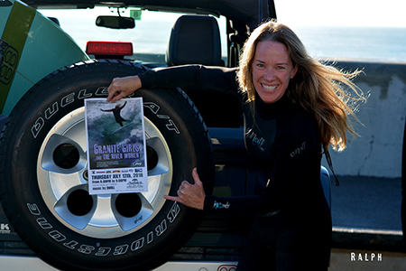 This is Hannah Vokey, one of the surfers in the GRANITE GIRLS. Hannah is hands down the most talented surfer I know (besides her husband). She surfs, skates, and paints. That's her painting on the Granite Girls poster. I love that painting. Her interviews in the moving are honest and sincere. We're lucky to have her in the community. Photo by Ed O'Connell