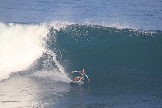 (Above) That's a smoking wave in Bali for Kainalu Nichols who is clearly living the surf dream. June, 2023.
