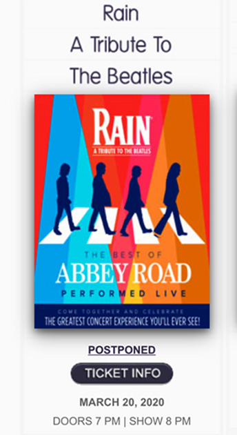 Bummer, I was really looking forward to seeing this with my brother Johnny. We both watched THE BEATLES on the ED SULLIVAN Show on February 9th, 1964 on an old B&W TV in