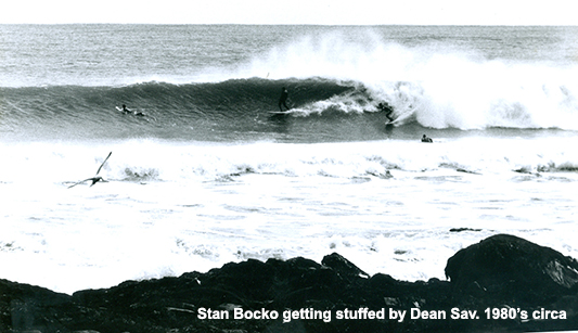 (Below) Stan sent me this photo the other day and relayed a short story to go along with it. This was shot in the 80's. I guess Stan took off on this nice right hander and got stuffed by another "local". Ok we all have made mistakes in our lives. But this guy turned to Stan and called him a "Kook". I am here to say with 100% conviction, that Stan Bocko is NOT a Kook. And if I am anywhere near by and hear anyone call him a kook. I will tell you this again, Loudly. And if that does not work, I will use sign language.