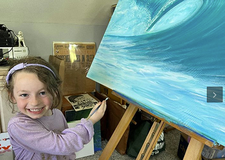 So on Mother’s Day I did a special painting for my wife Cory. And by special, I mean I had all three of our children, our son-in-laws, my son's girlfriend, and all four of our granddaughters paint it. I started on Saturday May 13th, 2023 at 5:31 PM and finished Sunday (Mothers Day) May 14th, 2023 at 1:15PM. Everybody (all 7 of them) signed the back. FYI I work strictly from memory, when it comes to my wave paintings. No photo references. Just the millions of empty waves I’ve seen in the last 60 years. They are all embedded in my mind. Oh and the title? Why MOTHER OCEAN of course.
