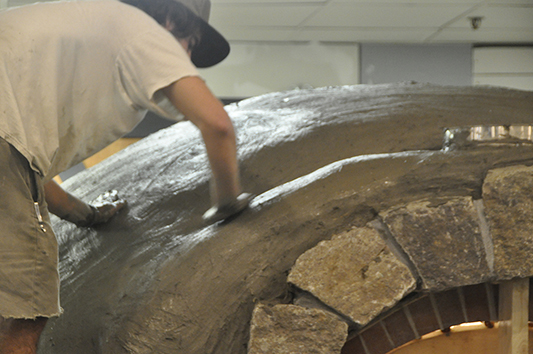 (Above) The oven building party at the new Flatbread in Georgetown.