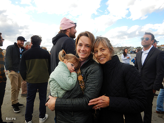 Karen Evans was an icon on this beach for well over 50 years. One of the original SURF FAMILIES here on this beach. When we started SURF FAMILY ROBINSON the Evans were there along with the Fatellos, the Grondins, The Goulds, The Haffenreffers, The Nichols, The Linsemans and so many more. Those days were magical. And it grew every year after with more and more families. Until our children outgrew the magic of SFR, and started to have children of their own. It was a treat for all of us when Karen made an appearance at this year’s SFR. That was a special day.