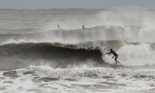 In fact, the sun popped out several times that morning. Under a dozen men paddled out that morning. I'm not sure how many actually rode a wave. It was that heavy, and it was also impossible to see. I do know that Kevin Grondin got waves. Kenny Sakurai got waves. Zappy, Dean Savastano, Jack Keefe, Chris Valhouli, Dave Eon, Phil and Arthur Beauchesne and a handful of others got waves.