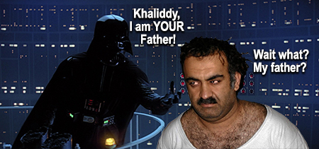 I'm not gonna lie when James Earl James passed away I could not pass up this opportunity to use our boy in this week's KSM spoof. Poor Sheiky, he can't win with me. Why do I have to be so hurtful to Khaliddy? Oh you know. Fodder for his weekly column in the GITMO GAZETTE. "WHO'S MY DADDY?"