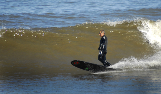 (Above) Billy Ritchie's nose ride. IRENE Monday August 29th, 2011. Photo By RALPH