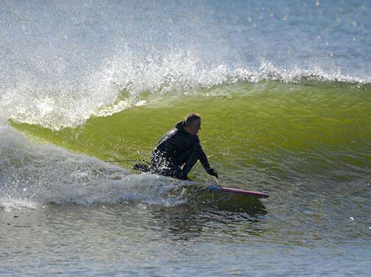 metal. I paid "Looks like one of your surfer buddies drowned down there." He said. "What? Who? Where? What are you talking about?" I jumped up asking. "Down the street. I got it all on video." He says showing me his little pocket camera. "Are you sure it was a surfer?" "I saw his little booties on. I don't know who else would be wearing booties." He says matter of factly. "Shit. This sucks. Could you tell who it was?" I asked again. "Now I don't know who you guys are. You all look alike to me." He answers. Then he went on to tell me that they were doing the full on chest compression's, trying to revive him, but it was no use. "Damn...I can't believe someone died out there." I was shocked. Then I thought about some of the waves I had shot, prior to the sounds of the ambulance. I know I shot some waves of some guy on a longboard who ditched his board a few times. Was it him? Did I inadvertently shoot his last wave? Shit. This was really bothering me. I of course, shared this information to others who came and went through the opening at 10th Street. Kevin Grondin even said that he had stopped to ask the police, if they needed help, because Kevin was in his wetsuit. They shook their heads at Kevin ,indicating that it was a lost cause. I saw Stevie O'Hara and told him what I knew. Stevie was equally bummed out. Then a reporter came by and asked me what I knew. I shared the info, that you all now know with the reporter. Then I shared the info with Dave Cropper at Cinnamon Rainbows. And this is where the Rumor stopped dead in it's tracks. Crop said he had seen the fire truck and ambulance at 18th street, but they were working on an elderly man who had suffered a heart attack. Clearly this is what happened. I asked if he saw, if the man had a wetsuit on. You know, the "booties" theory. He said, the man had dark socks on, and was laying face first. Dammit. This is what happened. A surfer didn't drown. An old man had a heart attack walking by the Wall. Not that this made it any better to the family and loved ones of the victim, but it did to me. A surfer didn't die. I called Pioneers and spoke with Brian and made sure he told Stevie the truth and how it really went down. Then I called my non surfing friend, and told him what he had videotaped. "You bonehead!" I yelled. What the hell? He said he was sorry, and was just sharing what he thought he saw. Meanwhile, the surf network was lit up for hours after. I guess it's true. Bad news travels fast. Well the good news is, we didn't lose one of the tribe. Of course, we all saw some of the humor in the story later on. And as Tony put it..."It didn't take long for the Gallows humor to come out." I guess, I was part of that. I was kidding saying, that at one point "I thought I had taken a photo of this guy's last wave, and may have the Ultimate Parting Shot for my column". Does that make me bad? Yes. Even though everyone laughed. And I do mean everyone. I was sorry I said it. But, I said it only after knowing, that no surfer had passed away. As far as the elderly man, who died while walking the wall. I do hope he rests in peace. And according to those who actually saw the man, he was elderly. So he lived a good life. And the last thing he did see, were those waves at the Wall. And those waves, were special. So, maybe that double rainbow was for him. Rest in peace Wall walker. Now