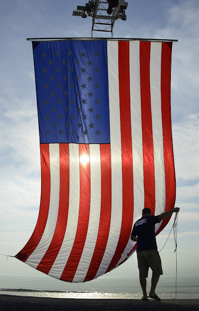 ![]() (Above) The HFD came down and hung this beautiful Garrison Flag, The WOUNDED WARRIORS HIT THE BEACH! Friday August 24th, 2012. Photo By Ed O'Connell * Click on the photo above to see the Whole gallery. |