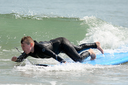 has been tremendous. The four surf shops Cinnamon Rainbows, Pioneers, Summer Sessions, and Zapstix have provided the soft tops and wetsuits every single year. It's been amazing. Year after year after year. We've been blessed with beautiful weather and perfect learning waves every time.