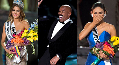The place went wild as they crowned Miss Columbia as the 2015 Miss Universe. She was handed the bouquet of roses, they placed the crown on her head, and she began to weep and wave. Weep and wave. The traditional act of a newly crowned Miss Universe. And then...Ole Steve Harvey comes out and stops the music and cheering. His head hung low, as he sheepishly announced his big snafu. What followed was the uncrowning of Miss Columbia and the newly crowning of Miss Philippines.
