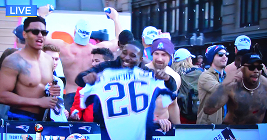But the Lovers are having their day in the sun. Poor Pat Patriot who was knocked down by a hater two weeks ago at the Pro Bowl is getting the last laugh. Hanging out with these Cheerleaders. He's no fool.