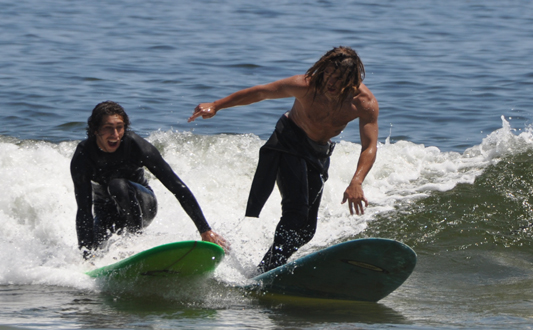 (Above) Malibu had it's famous Wall and we have ours. Local 10th Street Surfer Mackey V heads out on SMALL FRIDAY July 10, 2009. To see more click on Photo. Photo by RALPH Click on the image above to see more.