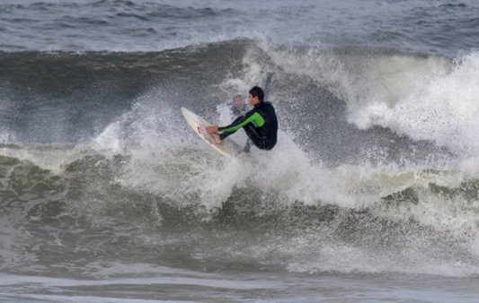 (Above) Tom Curran pulling into a heaving