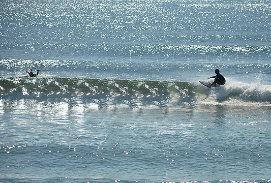 (Above) The bottom at the Wall is still filling in with new sand, but that didn't stop the boys from pushing the limits at a higher tide.