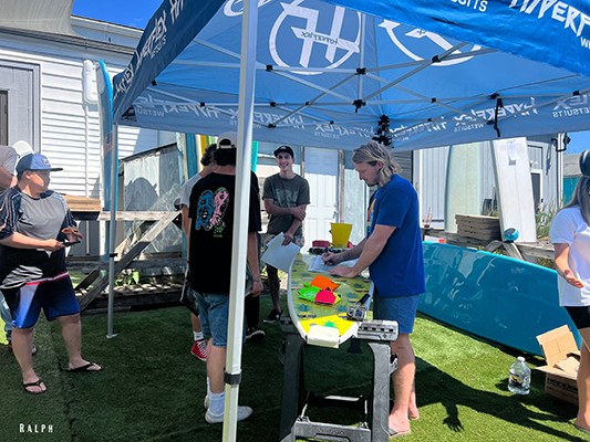 (Above) Many hands make for many smiles. SURFING WITH SMILES.