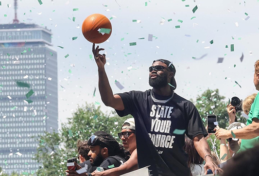 (Above) Jaylen Brown during the CELTICS VICTORY Parade