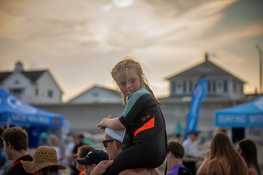 (Above) Noah provides the anchor to allow this kind of joy. SURFING WITH SMILES. Thursday June 20th, 2024. Photo by Stu Horne