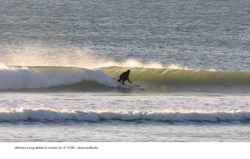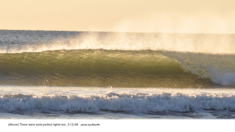 Speaking of the ocean, I noticed something the other day, while flipping through a magazine, that had nothing to do with surfing. But in this one particular photo, was this made up, model type, looking family. I'm not sure what the product was they were selling, but that's not important. What was important, was the ocean in the background. It was messy and onshore. Then I got to thinking, at how many TV spots we've seen, with the ocean being used as a backdrop. And more times than not, the ocean is a messy, sloppy, onshore junk. Clearly the director, and or photographer's, are not surfers. So my guess is, the TV spots that do have clean surf, in the background, must of had a surfer as part of their creative team. Because, no real surfer, would allow junk surf in his commercial. No matter what they are selling. Surfer's,would never sell their soul to junk surf. Case in point. If one of RPOTW sponsors came to me with an ad, that had junky surf, I'd have to send it back. We have to draw the line somewhere. I mean, if you have junky, onshore sloppy looking surf in your ad, what does that say about your business? Unless it's a Bargain store, or thrift shop, you need to set a tone. Clean surf says you care. Perfect surf, says you have quality and integrity. Junky, onshore crap, is unacceptable here. (Unless it's contest surf pics). What? Speaking of clean and junky surf. The surf on Wednesday and Thursday was both. Wednesday had size, but the conditions were somewhat sloppy. While Thursday had the clean lines, but lost the size and power. And both days were cold. Not as cold as it has been in the past. But pretty freaking cold. I shot a sunset and a sunrise. It's been a while since I shot a sunrise. There's a whole gang of pre-work, or preschool surfers, who get their wave quota in before work. They show up at zero-dark-thirty. It was kind of neat watching them. Especially in light of the fact, that the surf was really not that good. Or, it seemed that way at first. It ended up being better than I originally had thought. And that, was in due part, to the genuine stoke, of the handful of surfers out there. I knew two of them. Bryon Rivers and Chris Duarte. They were stoked. And I was stoked, to shoot a couple of their waves. But honestly, I was more stoked at shooting the rising sun. There was a longboarder who I did not know, who was sitting on his board, watching the sun rise, and I was trying to imagine what he was thinking about. It's those moments in surfing, when you can really put things in your life, into perspective. I stood there, freezing on the icy film on the sand, snapping away. And wondering about my own life situations, while wondering what this guy was thinking. And it occurred to me (again), about my own tagline of "Surfing heals all wounds". I was secretly hoping, that his life was free of worry and pain. And that he would leave this session, just feeling good about life. Because we all know, that life is not a bowl of cherries. Or in our case, a clean offshore head high swell. There are times when your life is like an onshore, cloudy, drizzly small, junky surf day. And like all bumps in the road, it is all in your attitude, as to how you get through it. How do you approach these days? Can you see through the junky surf? Do you know, and believe, that there are better days ahead? I know of many individuals who have positive outlooks on life. There are many in our lives. And there are just as many, who do not. Some who seem happy on the outside, but inside, they are tormented and full of loneliness and despair. I truly hope, those individuals eventually come around. And to those who feel that way, who are surfers, need to get out into the ocean, and cleanse your souls. Do it. Paddle out and let the healing power, of Mother Ocean, clean you, of all that is troubling you. There