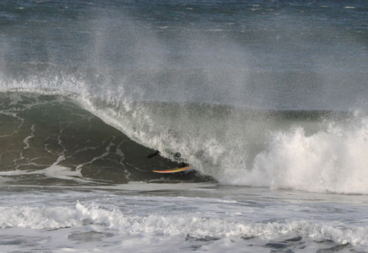 (Above) This is some of the weirdest shit I have ever seen at the Wall. I just wish I was there to capture this on video. CLICK on this image to see more of "SNORKY Goes Surfing at the Wall." March 13, 2011. Photos by Rob Case |