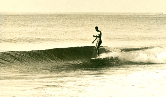 Peter moved back to the East Coast in 1963. He spent many days surfing on Cape Cod and the Islands and really developed and smooth longboard style. These early B&W photos of Peter will attest to his stylish stance and positioning on the waves.