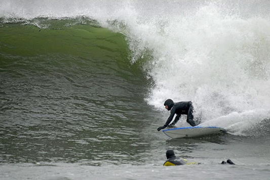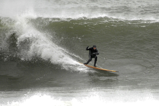 (Above) Meanwhile...a quick surf before the Tsunami.