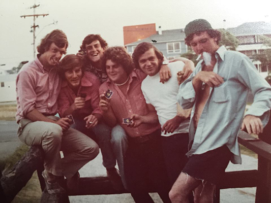 (Below) I'm sure I have said this before, but it's worth repeating. We were all young once. We only stay young and healthy for a short time before life catches up and kicks you in the teeth. But those of us who had the insight to document these times, can always go back and remember. The times when we were all young. Left to right JT, Tom, JRat, Curt, Paul, John. On the Lanai at Baileys, 4h of July 1973. Note Spindrift Hotel in background
