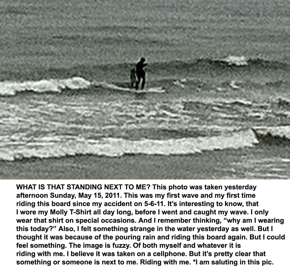 First, I wore my Molly T-shirt all day on Sunday before going down to get my wave. Big deal? Well it is, because I usually only wear that shirt when I am attending Molly events. When I pulled it out of the closet yesterday I even said to myself. "Why am I wearing this today?" And of course my reluctant approach at riding the board that almost killed me 2 weeks before.