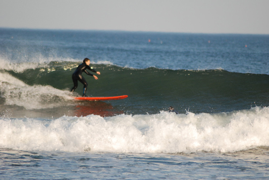 (Above) Tyler Redy, a NJ goofy footer enjoying the new sandbar at the Wall.
