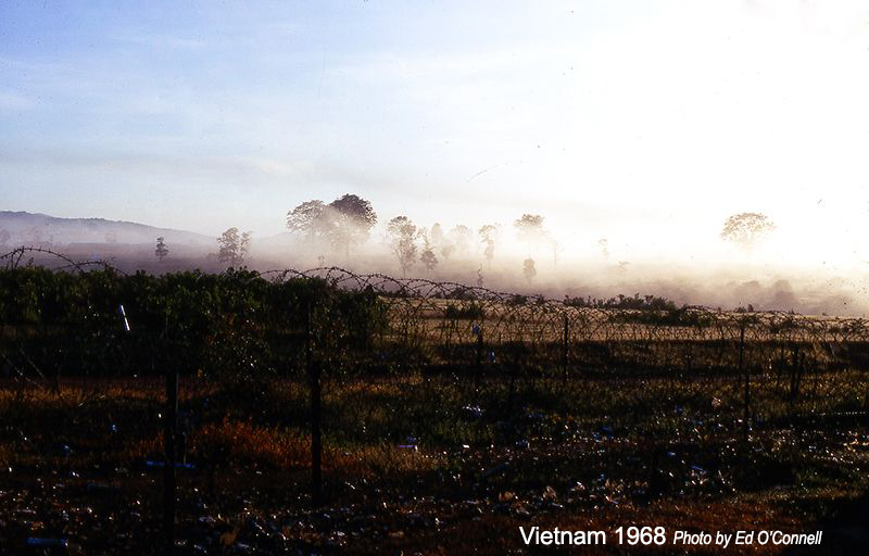 This was Ed's world in Vietnam. The early morning fog had yet to burn off. l would imagine these peaceful scenes in the mornings for Ed were his most relaxed. Because in between he was flying in those Dust Off choppers picking up the wounded and dead grunts on the battlefields. Ed was in the thick o0f it over there.