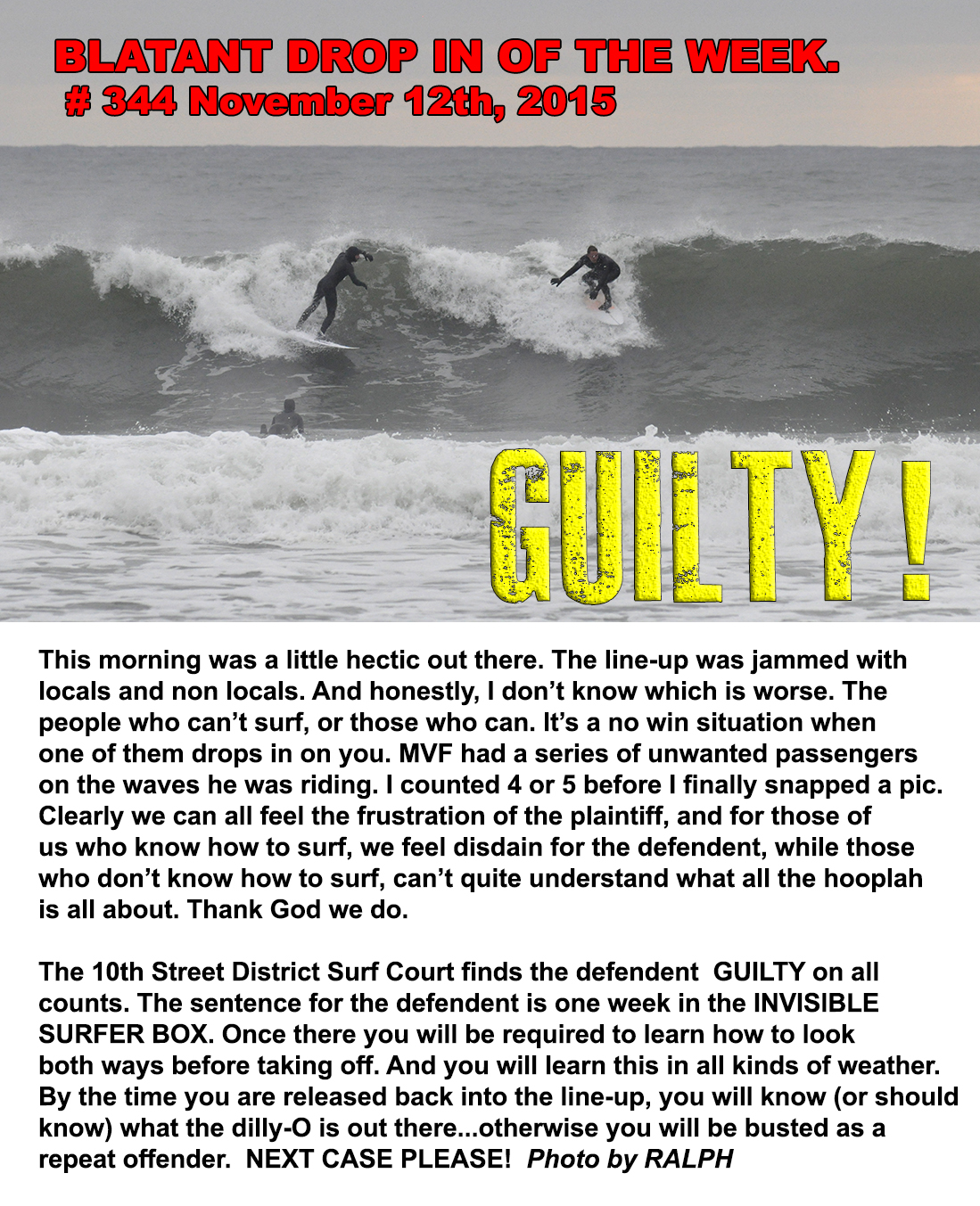 (Above) The morning had broken with a wind swept, clean ground swell. And Billy Ritchie was there to greet it. November 13th, 2015.