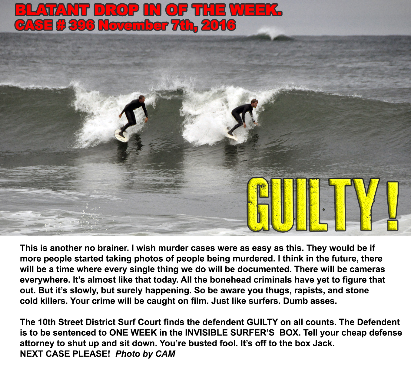 This is another semi embarrassing unknown pic. This is from Hurricane Bill in August of 2009. I wonder if he told his friends that he pulled off a "killer air" and some photographer may have gotten a photo of it. Oh yeah. Some photog got it alright.