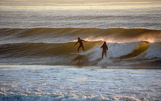 (Above) It was a beautiful sunrise with a solid swell. The WALL