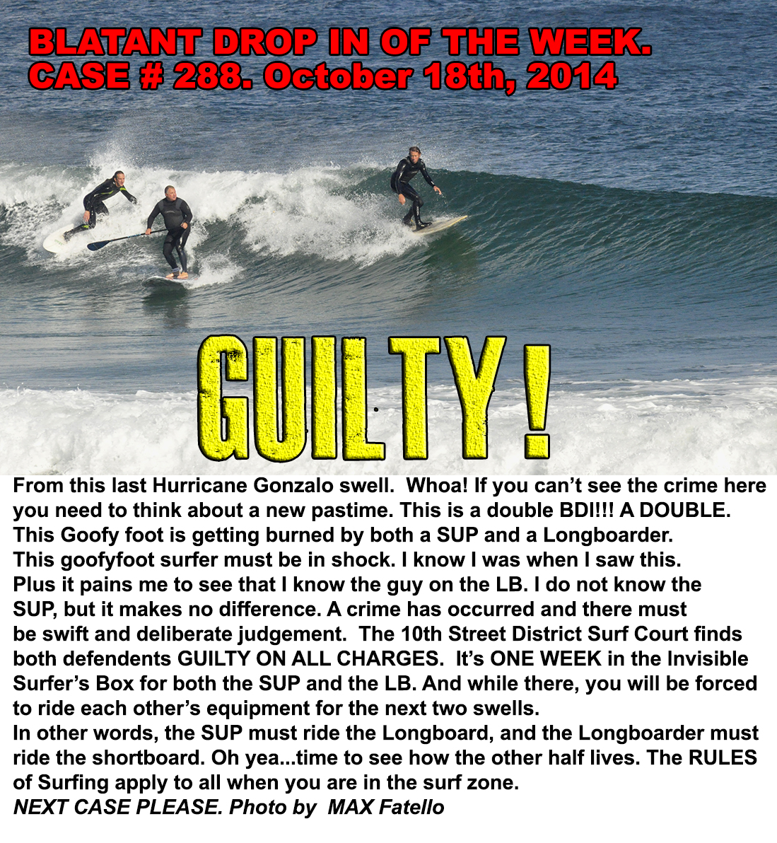 Today- The Gonzalo Swell October 18th, 2014. Photos by John White ![]() (Above) This is one fast looking left. So Gonzalo may not have been very big, but he was fun. Just ask this guy. October 18th, 2014. Photo by John White *Click on the photo above to see the whole gallery |