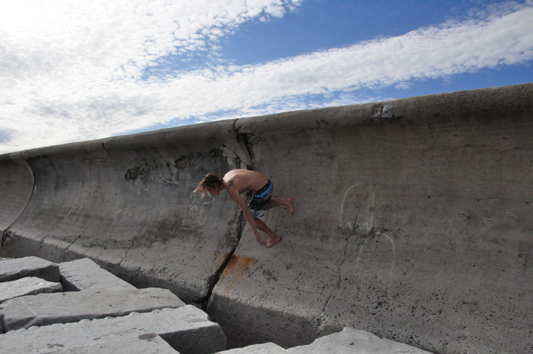 ![]() (Above) So maybe he was delirious from falling in the cold water. Or maybe he was just having fun. Dropping in at the Wall 10-28-2010 Photo by RALPH |