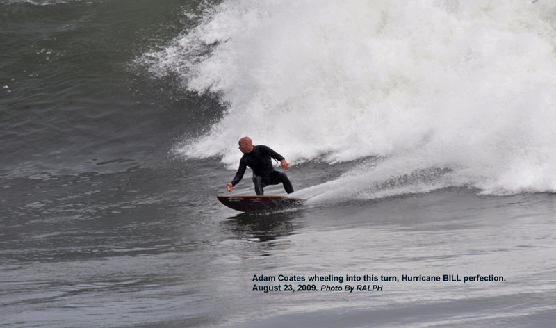 Yesterday- REMEMBERING HURRICANE BILL2009. (Below) That was one great swell. Hurricane Bill. Every point, reef, and beachbreak was lit up like a roman candle. I shot so much footage and stills that swell. I only posted a fraction of what I shot. But I do remember this pic. It's Adam Coates driving hard off the bottom backside into a long open face.