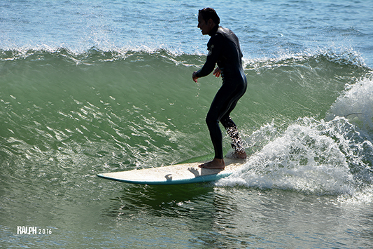 (Above) Mikey doesn't just surf on a long board. His short board designs are just as functional and wacky. His finless 5' something was fun to watch. September 16th, 2016Photo by RALPH *Click on the photo above to see the whole gallery
